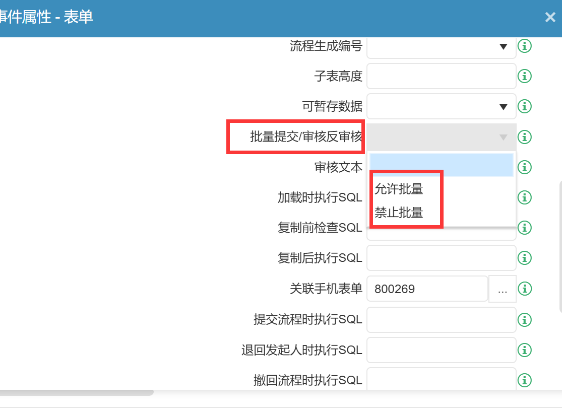 - 1.表单设置,表单属性,增加“批量提交/审核反审核”,设置对应列表是否可以批量提交,批量审核反审核,如未设置此属性,则按【系统参数】/【列表】/【显示批量按钮】的设置