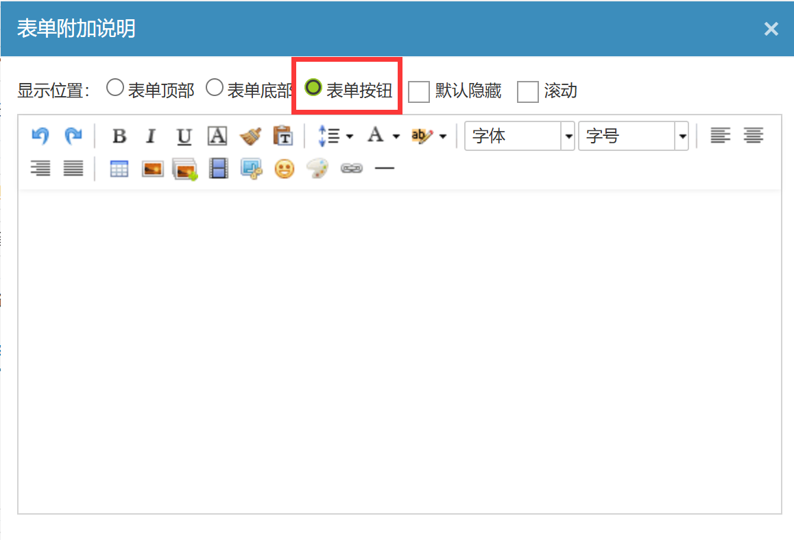 - 5.表单附加说明,支持在工具条作为“帮助”按钮来弹框显示