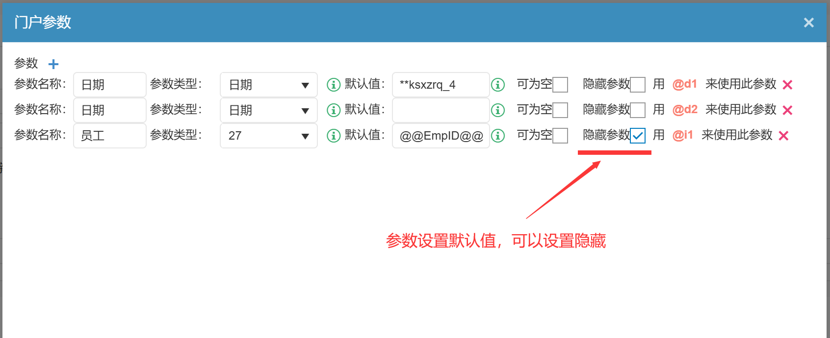 - 21.门户参数支持隐藏,支持选择引用实体时在默认值里指定弹出的列表ID