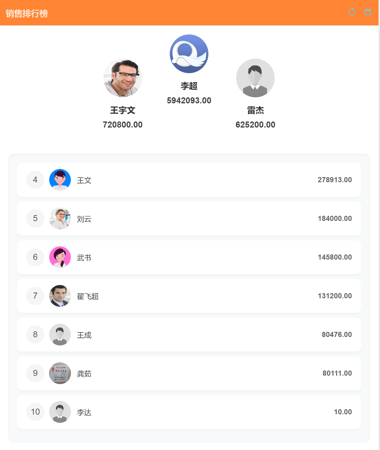 - 22.门户部件增加“排行榜”部件,可设置排行榜取前多少名
