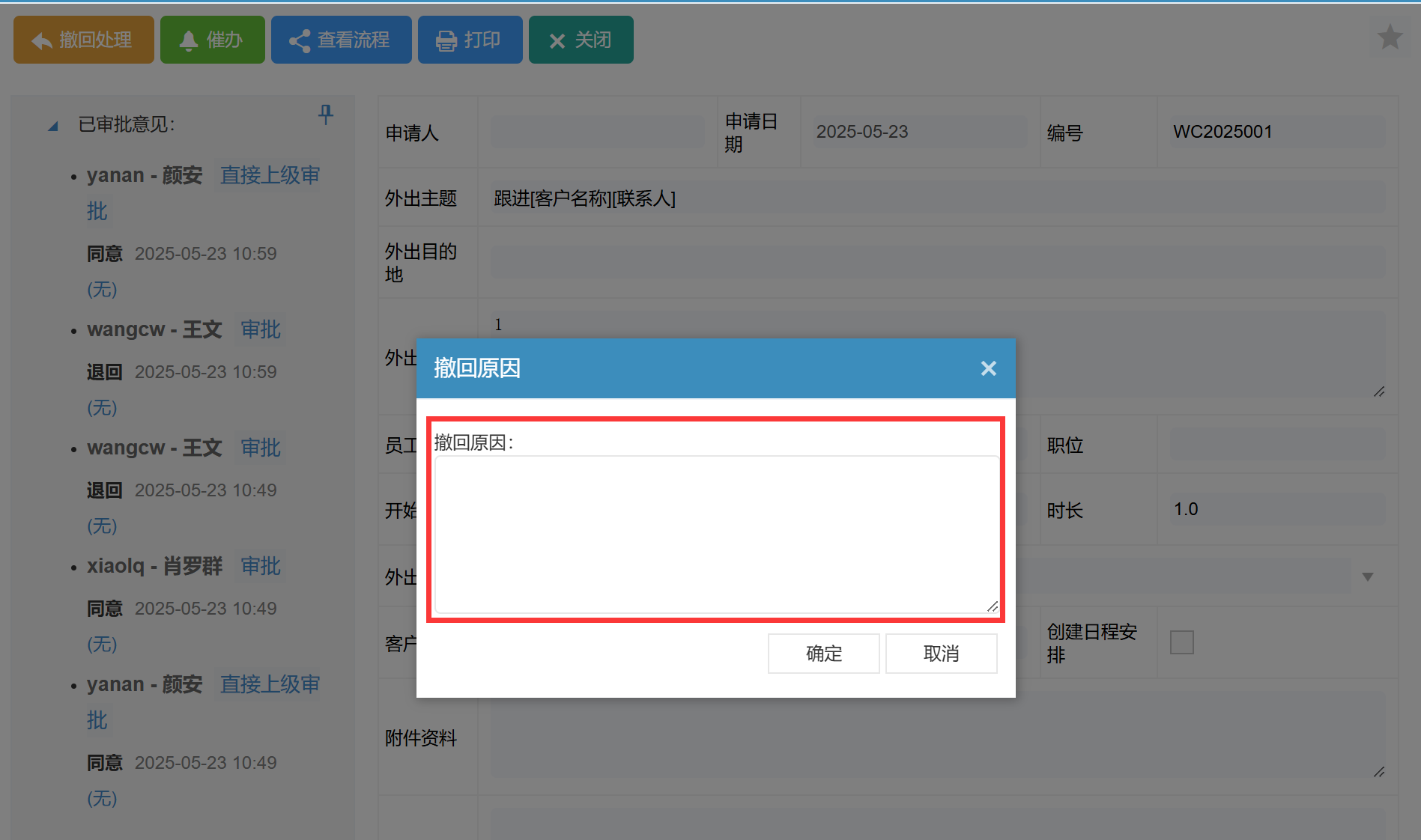 - 30.系统参数,表单,增加“撤回已审批任务填写原因”,设置撤回已审批任务时是否必须填写撤回原因