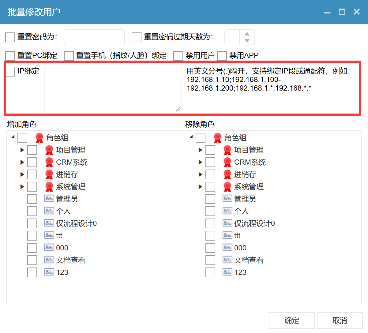 - 34.用户信息增加:“禁用APP”,“绑定IP地址” 两个字段,支持批量修改这两个字段